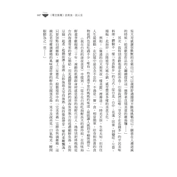 除了美食故事,書中也談到陳鴻獨特的養生哲學、進退有度的服務藝術、職人精神以及對傳統手工製作的堅持,強調珍惜有溫度的食物和記憶。