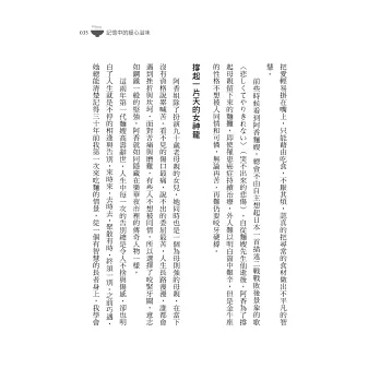 《陳鴻的美食散步》書中傳遞的,與其說是「說食」、「說美食」,不如說是「說人」、「說人生」。除了介紹大街小巷的美食之外,也搭配充滿個人情感的內容,讓我們在享用美食的同時,也了解每道料理背後蘊含的意義與廚師的人生故事,這是最令我動容的地方。例如: