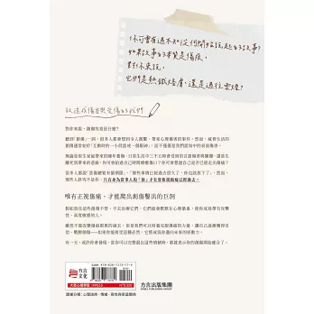 ★ 以溫婉細膩的筆調,娓娓道出一則則烙印在人生與腦海的故事,教導讀者如何辨識躲在彆扭情緒背後的創傷、培養克服傷痛的力量。