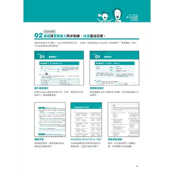 ○ 閱讀篇:分為「文法」、「閱讀」、「單字」三大部分,除了題型與解題技巧以外,同時也奠定高分必備的基礎英語力。