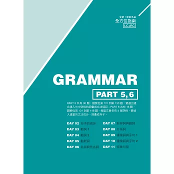 本書讓讀者在最短時間內了解多益測驗的祕方,就是用一句話歸納各種題目的出題法則,不讓你感覺囉囉嗦嗦嗦講半天還是不知道關鍵重點在哪。書中針對每個多益出題類型,用最簡單的說明,呈現各種出題模式與解題策略,並搭配示範例題,讓你快速掌握重點。你再也不會一想到「文法」,就頭痛、胃痛甚至想要逃跑!雖然多益測驗有許多文法考題,但常考的都是最基本的概念,所以只要掌握基礎就能確實取分。本書特別針對文法基礎薄弱的學習者,不使用過度艱深的文字,以容易理解的方式說明各種詞性、時態、句型的關鍵文法考點,讓害怕文法的人也能征服相關考題。