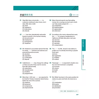 ◆關鍵單字列表、超過1000道練習題及一回完整試題。提供最省時,也最扎實的訓練。