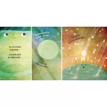 以迷人又可愛的插畫,從遠古時期開始介紹地球45億年來的變化,並且透過太陽與月亮的關係,讓讀者更熟悉地球,了解我們受地球滋養的同時,也應該要好好的呵護她。