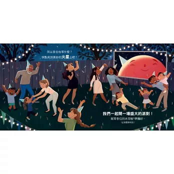 介紹距離地球四億公里外火星的小祕密,他與地球的距離會隨著軌跡產生變動,並說明火星與地球的相似與相異處。作者透過簡單的二選一,讓讀者從繪本了解這顆神祕紅色星球的知識。
