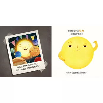 讀者可以透過圖文並茂的繪本,快速的學習與太陽相關的知識,如:太陽系的相對位置、體積與各項比例,好像身歷其境的進行一場華麗的太陽系之旅。最後作者以簡單的條列式資訊,快速、明瞭的讓讀者對太陽有進一步的認識。