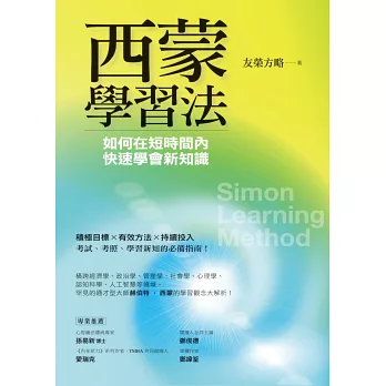 本書不僅介紹西蒙學習法的核心邏輯,還包含偏科(不擅長的學科)、找學習榜樣、避免假性學會、如何幫助記憶、時間管理等學習重點,協助讀者短時間內學會新知識。適合家長與學生閱讀,養成學習習慣,從現在開始!