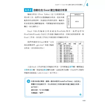 本書從基礎的 Excel VBA 開始,說明如何用 VBA 來操控 Excel 活頁簿、工作表和儲存格的自動化操作後,再教你活用 ChatGPT 進行活頁簿和工作表的合併與分割。接著教你資料清理、轉換的方法,並使用 VBA 正規表達式來清理儲存格資料。清理資料後,即可建立 VBA 程式自動化繪製圖表、套用公式和建立樞紐分析表進行資料分析。