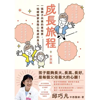 面對日益減少的新生兒人數,以及逐漸老年化的社會結構,台灣未來主人翁的健康守護與疾病防治更顯重要。林口長庚醫院兒童內分泌暨遺傳科邱巧凡主治醫師,將自己的專業與臨床經驗彙集成書,將艱澀難懂的醫學知識,以臨床案例搭配生動的插畫,鉤織成淺顯易懂的圖文來呈現,解答家長們的擔憂,導正錯誤的網路迷思,讓兒童照護者知道如何正確辨識兒童生長發育異常,及早發現疾病初期的警訊,及早「正確就醫」。