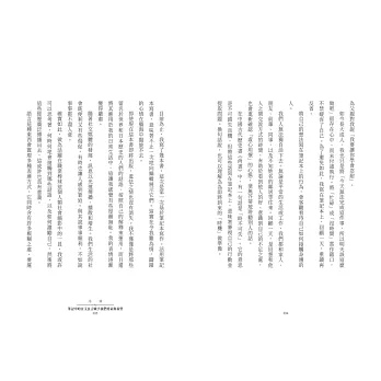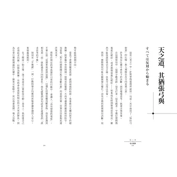 本書共計有〈泰然〉〈逆境〉〈毫不猶豫〉〈堅信不疑〉〈共同〉5個篇章,每一篇章下收錄12篇文章(全書共計60篇),每篇文章引用一中國經典(四書五經、孔孟思想等)名句,或日本思想家名言,與他訓練及比賽後的省思相互串聯。