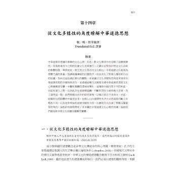 本書開創性地匯集了十多個不同學術領域的頂尖學者的研究論文,以跨學科模式,深入探索中國道德觀。透過廣泛的理論視角,涵蓋哲學、文學、人類學、史學、社會心理學、神經科學、發展心理學和行為生態學等的研究領域,綜整具融合性的跨領域概述,激發中華文化研究新思潮,為漢學學者必讀的重要著作。