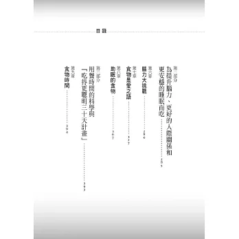 我們吃下的東西不僅會影響我們的體重,也會影響到我們的專注力、與他人溝通的能力,甚至攸關我們賺取所得多寡的能力。我們的食物選擇會影響到睡眠品質、人體防禦疾病的能力,以及皮膚和外觀的狀態;甚至控制我們的壽命會有多長。沒有任何單一事物可以像食物一樣影響到我們生活這麼多的層面。現在該是我們尊重食物聲譽的時刻了,而從《吃得更聰明》這本書學得的一切,將會為你的生活各個層面帶來最令人讚嘆的轉變。
