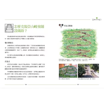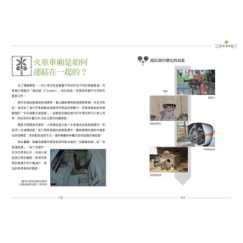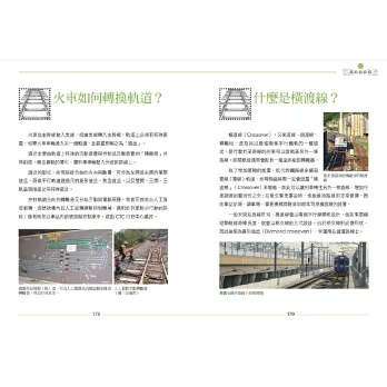 大量照片圖解,加上內行的文字說明,呈現火車車輛、鐵軌與月臺設計的結構與原理。