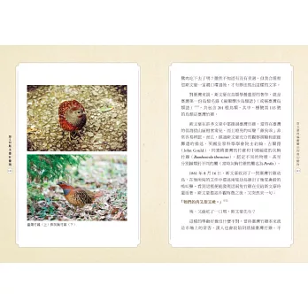 「談起斯文豪,在博物學界無人不知。19世紀末,斯文豪因緣際會來到臺灣,熱愛自然的他,記下許多豐富珍貴紀錄,尤其是鳥類。不論是環頸雉、臺灣藍鵲、臺灣竹雞、黃胸藪眉,還有許多臺灣動植物,都有斯文豪的影子。談起林大利,在現代臺灣鳥類研究中,也是無人不知。大利在本書中破除科學論文的形式,博引世界與臺灣研究,又不失科學家的專業,讓本書讀起來有深度之外,更是趣味盎然。」──暨南國際大學歷史系助理教授 蔡思薇