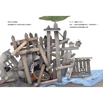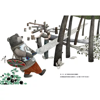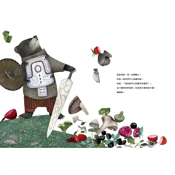 這個故事比較特別的是安排了一個會自省的主角。熊戰士發現原來是自己惹的禍,他一一回頭補救:把自己的盾牌送給守衛,又幫鹿豚拔箭、治療傷口,送了水果給狐狸,也幫小鳥蓋了房子……最重要的是,他種下許多小樹苗,彌補自己的砍樹行為。
