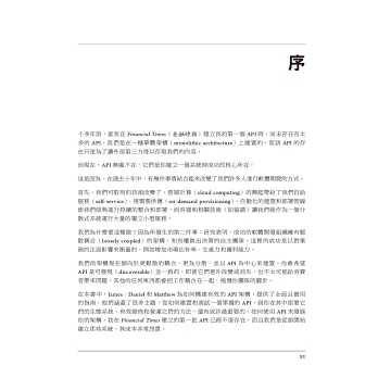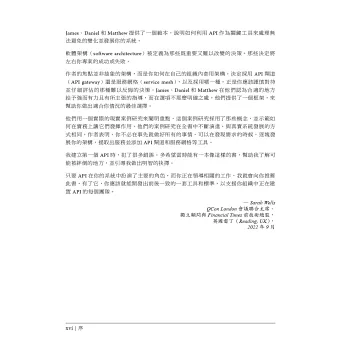 「雖然容器和微服務受到這麼多關注,但人們往往忽略服務通訊的基本原理。本書糾正了這一點,深入探討如何構建和發展你的API。」