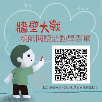 ★「豐子愷兒童圖畫書獎」得主林柏廷最新力作,一個以小見大的深刻寓言──以「牆壁(wall)」象徵「世界(world)」,在兩個男孩間的具體「小」衝突中,透過各種牆面塗鴉和一個又一個的窗景,呈現關於生活、教育、歷史、人權、自由vs禁錮、和平vs戰爭……等種種我們也許會稱之為「議題」,但其實是這個世界日常的一部分,藉此引發讀者產生聯想和對話