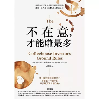 「這本書是對比爾‧蘇西斯《不看盤,我才賺到大錢》的重要補充。這本在全球流行病期間撰寫的最新著作,證明了『咖啡館投資法』在所有市場的智慧。與大多數只針對賺錢的投資書籍不同,比爾向我們展示了如何利用我們的財富來實現個人幸福。」──泰勒.雷利摩爾(Tatlor Larimore),《鄉民的提早退休計畫〔實踐版〕》作者