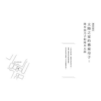 新井從東京港區青山的岡本太郎紀念館講起,沿著岡本家的時間軸,認識他們各自華麗的職業生涯,和前衛的生活方式。同時隱隱看見,跨越明治、大正、昭和、平成時代,東京百餘年間的社會變遷。