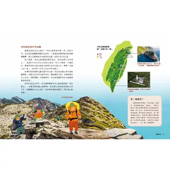 《少年讀臺灣──臺灣地理》每頁都有精彩插畫與照片,比如「為什麼臺灣是高山島?平原這麼少?」這個疑問,我們帶你這樣學──
