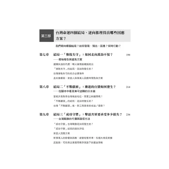 面對台灣當前最嚴厲的挑戰!本書提供最嚴肅的解構與選擇。