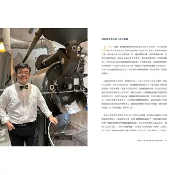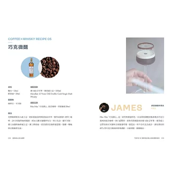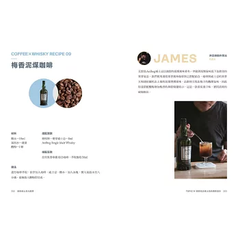 首次公開烘豆冠軍的特調Recipe,將咖啡香和酒香做創意搭配,精心設計10杯超乎你想像的香氣加乘爆擊!有冰飲、熱飲、「可以吃」的咖啡…等,甚至能出現法國特級園的葡萄酒風味?顛覆以往只認識愛爾蘭咖啡的印象,收錄製作過程照讓讀者「視飲」體驗,讓你對於咖啡威士忌的印象徹底進化!烘豆師將不藏私分享他的創作想法,透過執杯大師的品飲筆記,引你瞬間進入香氣繚繞的生動場景。