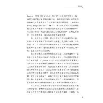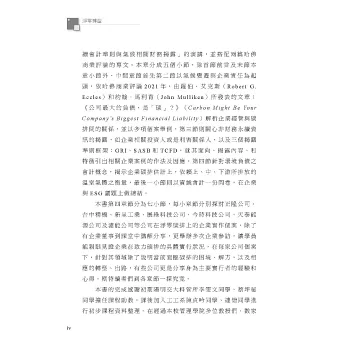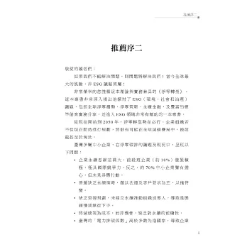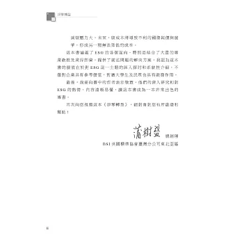 最後,我要向書中的作者表示敬意,他們的深入研究和對ESG 的熱情,內容清晰易懂,讓這本書成為一本非常出色的專書。