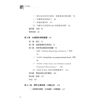 第三章則以資誠聯合會計師事務所永續發展服務部門趙永潔會計師、管理學院副院長黃宜侯教授為主要編輯者,從會計及財務的角度探討永續會計與碳揭露的議題,主軸為「永續會計準則與氣候相關財務揭露」的演講,並搭配兩篇哈佛商業評論的專文。本章分成五個小節,除首節前言及末節本章小節外,中間章節首先第二節以氣候變遷與企業責任為起頭,依哈佛商業評論2021 年,由羅伯.艾克斯(Robert G. Eccles) 和約翰.馬利肯(John Mulliken) 所發表的文章:〈公司最大的負債,是「碳」?〉(Carbon Might Be Your Company's Biggest Financial Liability)解析企業經營與碳排間的關係,並以多項個案舉例,第三節則關心非財務永續資訊的揭露,如企業相關投資人或是利害關係人,以及三個揭露準則框架:GRI、SASB 和TCFD,就其面向、揭露內容、和特徵引出相關企業案例的作法及因應,第四節針對環境負債之會計概念,揭示企業碳排估計上,依賴上、中、下游所排放的溫室氣體之衡量,最後一小節則以資誠會計一份問卷, 在企業與ESG 議題上做總結。