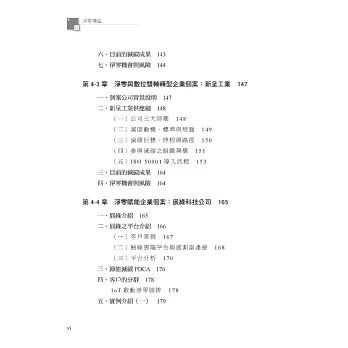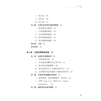 本書將從實務的角度搭配六個淨零企業個案,介紹企業淨零碳排的概念、背景和實現過程。此書的前三章包括淨零碳排概況簡介,企業淨零策略思維,以及永續會計與碳揭露。希望讀者能透過前三章的內容對於淨零的概況有初步的了解,最後一個章節主要敘述企業實作個案包括:正隆公司、台中精機、新呈工業、展綠科技公司、今時科技公司、天泰能源公司及濾能公司,其中個案的主題涵蓋淨零標竿企業、淨零與數位雙軸轉型,還有淨零賦能企業個案。