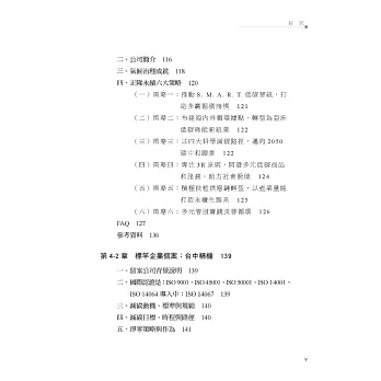 第二章則轉以企業淨零策略思維為題,在淨零趨勢下,企業除了被動去執行相應而生的規範及轉型,主動掌握淨零造就的「氣候科技」(climate tech),由此萌生新興的產業區隔,也能提早嗅到淨零趨勢的商機並進早佈局。第一節從氣候科技之定義和涵蓋範疇為始,包含溫室氣體排放來源、以及氣候科技所帶來的資金投入,並以企業如何運用作結。第二節則著重企業淨零相關觀念與標準,以及各標準規範如何與企業息息相關,該從何種管理著手,而第三節則呼籲企業該如何乘淨零轉型之勢,掌握商機,不管是培養減碳能力、調整組織設計、明訂排碳與ESG 相關績效指標,並以最後小節總結此章重點。