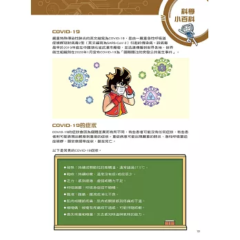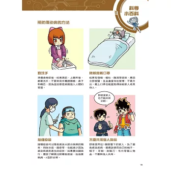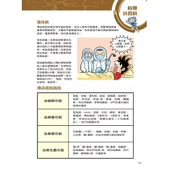 設有「科學小百科」單元,藉由X星際探險隊隊員的生動對話和淺顯易懂的文字,來介紹基本傳染數的數字越大代表該傳染病越難控制、透過跳蚤傳播的鼠疫和透過蚊子傳播的瘧疾、天花是人類第一個從自然界中根除的病毒、為什麼感染霍亂會引起嚴重的腹瀉、容易引起全球大流行的A型流感病毒、痊癒後不會終生免疫而會反覆感染的COVID-19等超炫知識,讓小朋友有系統的學習。