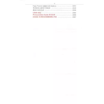 11. 附錄詳列其他詞典難以找到的漢語文化特色詞,如:bodhisattva(菩薩),pearl milk tea(珍珠奶茶),nasolabial folds(法令紋)等。
