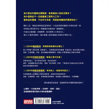 本書可以解答許多有趣的問題,例如,被綁架的斯德哥爾摩症候群受害者為何幫綁架者說話?為何人們不計代價要到羅浮宮目睹《蒙娜麗莎的微笑》的真跡?為何美國發現接種過疫苗的人幾乎不會傳播新冠肺炎病毒,但仍要求全民戴口罩?宗教團體為何充滿一堆勞民傷財的規矩和儀式?為何二次世界大戰,希特勒會接連併吞奧地利、捷克及波蘭?義大利黑手黨為何要求其黨羽遵守緘默規則?對於上述問題,讀者皆可透過本書流暢的譯筆下,獲得滿意的解答。