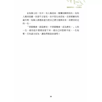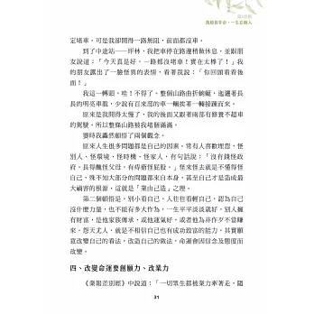 重新改寫,費了相當多的時間與精力,也參考很多先賢名人的著作,好幾位朋友提供意見與指正,專家何飛鵬、嚴定暹、妙開法師、陳健發、梅汝彪及多位名家的推薦更增能量,期盼此書能受肯定,在極需樂觀、熱情、環保、公益的新世紀裡創造可貴的助力。