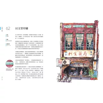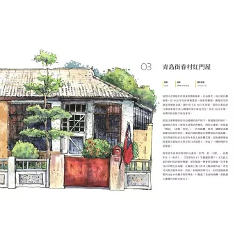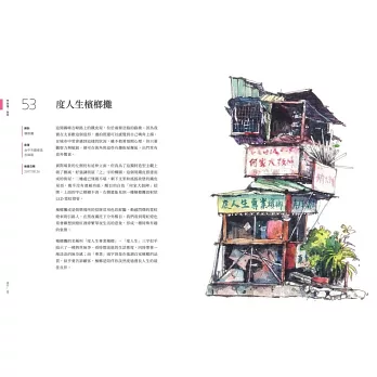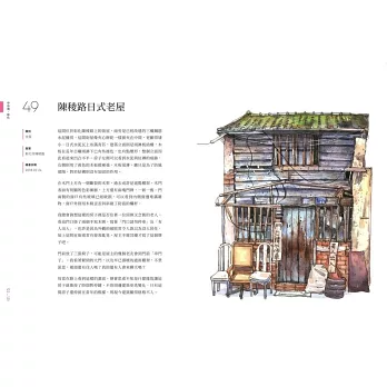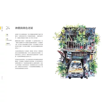 介紹台灣街屋建築符號美學,不藏私分享繪畫工具、步驟與技法,滿足知識與學習的興味。