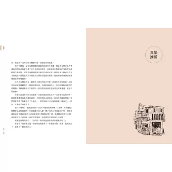 素描必然需要步行,《街屋台灣》以接近日本路上觀察學的取徑,記錄街道中各種有趣新鮮的事物,揭露了與建築師筆下全然不同的都市樣貌。──畢恆達