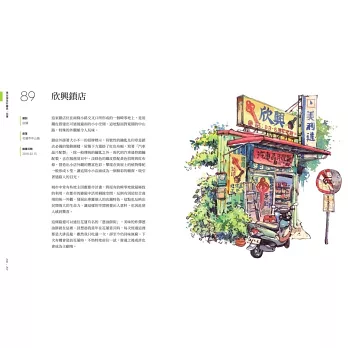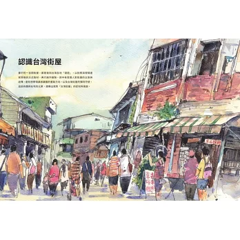 手繪的凝視與記錄,是將「台灣街屋」記憶下來最浪漫的方式。這樣直率、堆疊、複雜、多元的街景,正是屬於我們的「台灣味」;而市井的、人文的內蘊和豐美,只等待──你的發現!