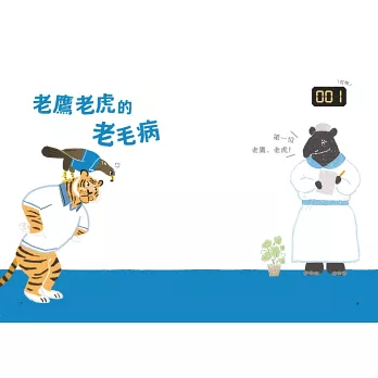 病患001〈老鷹和老虎〉:其實大麥町醫生也沒傳說中那麼神啦!那些小病小痛找他是沒問題,但像是我們這種有偉大志向的病患,還是得靠自己!說到這還得感謝大嘴鳥你呢,你的報導比大麥町有用多了。