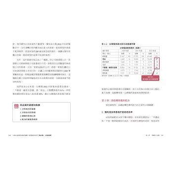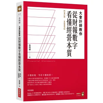 3大表×6大概念.超清楚邏輯.看到數字馬上有感立即察覺企業獲利停滯的呻吟聲、資產縮水的哭泣聲……書中分析的財報數字,皆是讀者熟悉的台灣企業個案,讀起來更為熟悉及應用性更高。基本架構不變,卻大幅(八到九成)改寫、引入不曾提出的新觀點,同時以2022、2023的財報佐證、分析。
