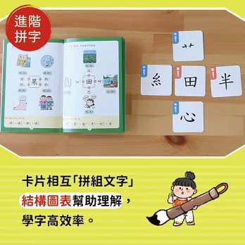 2. 專為學齡前寶寶設計的120張一字一圖漢字記憶卡,圖像連結抽象漢字,透過遊戲,讓認識文字變得好有趣。