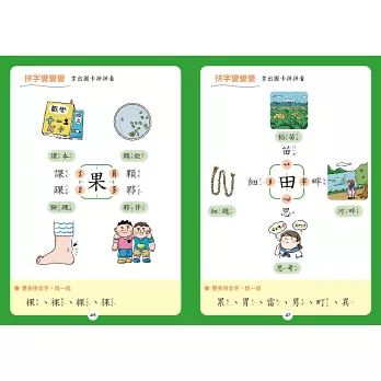 3. 遊戲手冊裡的漢字思維圖表可幫助幼兒激發聯想,進而延伸學習組合300字,擴增字彙效果更加倍!
