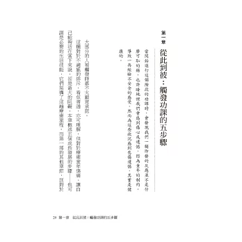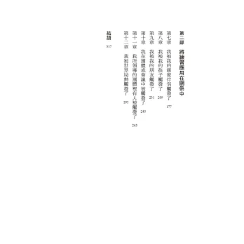 本書中,作者蘇珊.坎貝爾將手把手地引導你透過觸發功課五步驟,承認與接納那些觸發反應,回溯與理解過去是如何影響現在的自己,在被觸發時能辨識並及時暫停具破壞性的行為,同時慈悲地陪伴自己的內在。