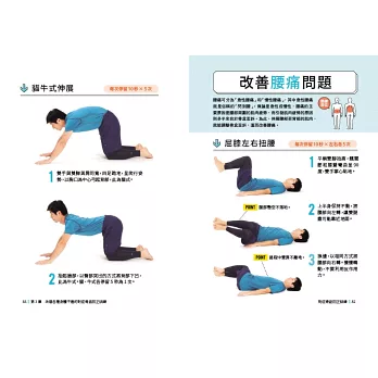 ●改善腰痛問題→(屈膝左右扭腰/貓牛式伸展)