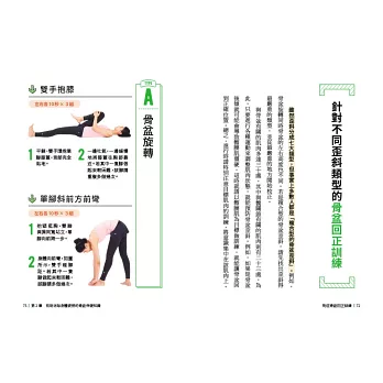 2. 動作難易度循序漸進、分門別類,可量身打造最適合自己的「骨盆回正訓練組」。