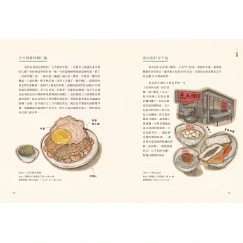 當我得知,Leslie即將把這些我所鍾愛或是我還沒拜訪過的店家,畫出來並集結成冊時,心中暗自竊喜。如此一來我就可以按圖索驥,前往尋找別人家巷子口的那碗美味記憶。這份美味,也將成為我們台灣人跨時空的共同飲食記憶和自我身份的認同。