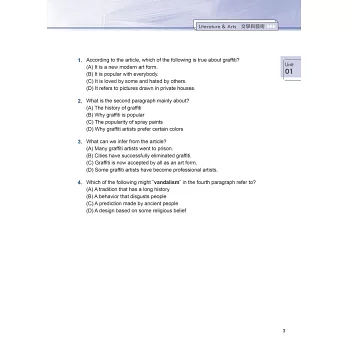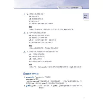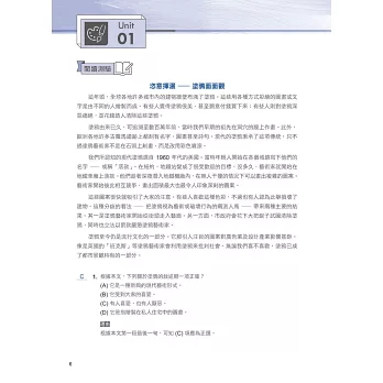 全文翻譯精準確實,題目解析切入重點,並羅列重要單字片語及延伸補充,易學易懂;讓讀者能夠運用字彙、語意、文法等,去理解文章結構、脈絡,並加以分析比較,輕鬆掌握作答關鍵,增進應考實力。