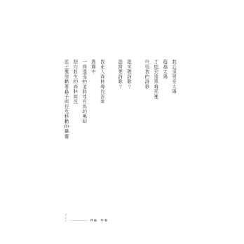 你便會發現:早晨是詩。午後是詩。大火是詩。灰燼是詩。夜晚是詩。