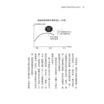 和田徹在書中首度公開24種打造殿堂級熱銷商品的技巧,一開始就明白點出,在既有市場中與類似商品競爭,只會把市場做小,利潤越來越低;重點應該是「重新改造市場」,也就是「創造性破壞」,這可以從想像消費者10~30年後的理想生活開始。