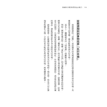 另外,做企劃不是一個人的事,本書也分享如何取得團隊成員的誠心支持,以及怎麼做才能說服主管、老闆力挺自己的企劃。