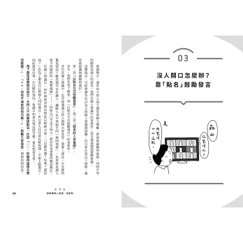 至於避免會議上一片死寂的方法也很簡單,只需要以直接點名的方式,鼓勵大家發言。比如「◯◯,你有什麼想法嗎?」,被點到名的人,一定會有所回應。