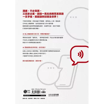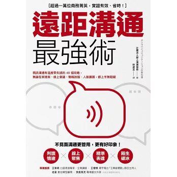 我們在本書中精心挑選了許多技巧,分析如何在各處異地的情況下,與他人進行良好的溝通,以及如何與初次碰面的人隔著螢幕建立關係。書中介紹的方法既簡單又實用,保證各位可以現學現用。